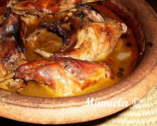 Outra opção, mais rápida, é levar todos os ingredientes ao lume a cozer num tacho. Depois do coelho estar bem cozido colocar no alguidar e levar ao forno a assar até ficar a carne rosada.