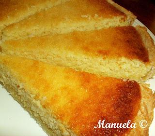 Junte os ingredientes pela ordem descrita e bata muito bem, com uma colher de pau, entre cada adição. Coloque a massa numa forma redonda, previamente untada com manteiga e polvilhada com farinha de milho. Leve ao forno a cozer, em temperatura moderada. Desenforme e polvilhe com açúcar fino.